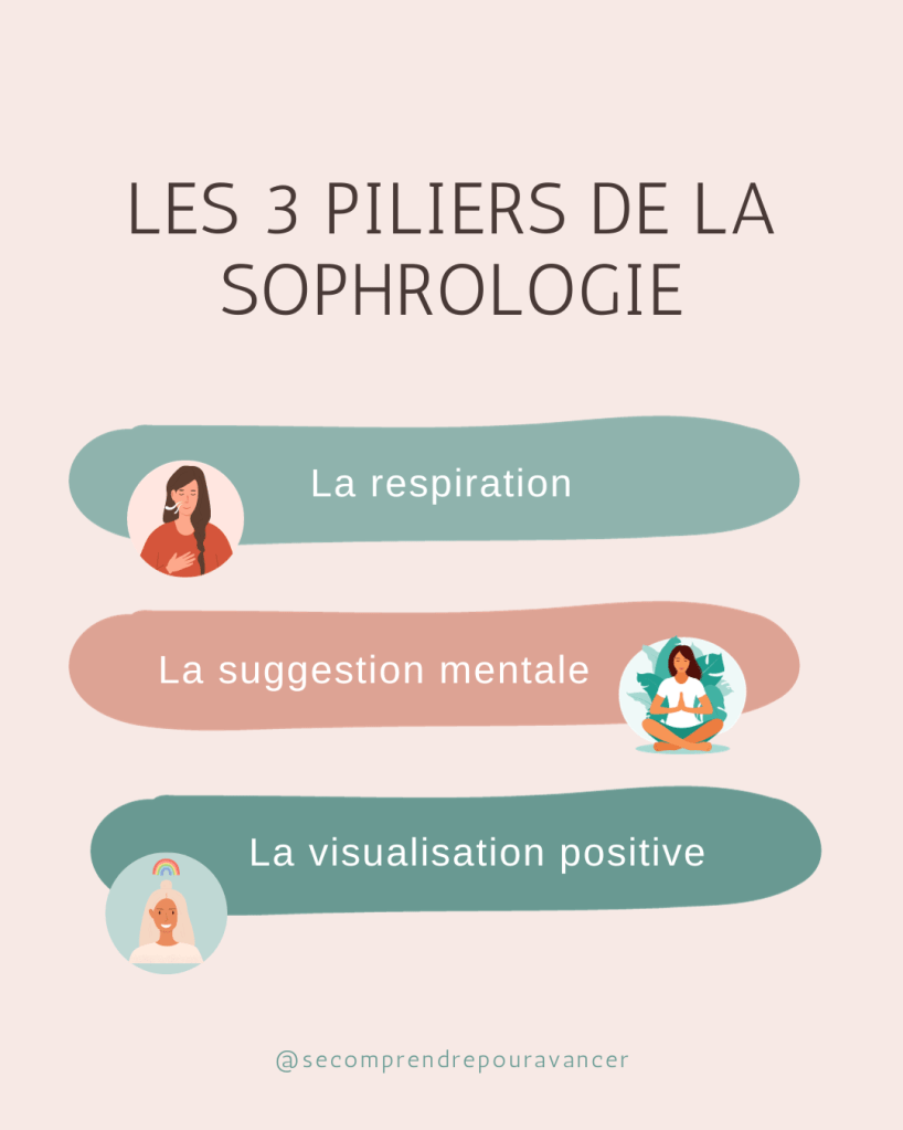 La sophrologie est fondée sur trois éléments : la respiration contrôlée, la détente musculaire et la suggestion mentale, elle a comme objectif d’apaiser les symptômes et retrouver un état de bien-être physique, mental et émotionnel. La pratique est non tactile.