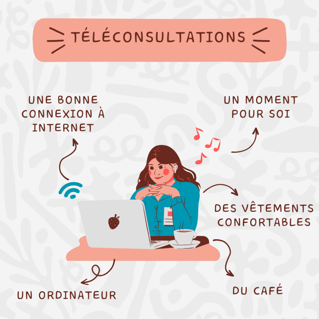 Le service de téléconsultation a comme but d’innover et d’offrir un service d’aide thérapeutique, rapide et accessible. Je suis en mesure d’offrir un service de téléconsultation partout en France mais aussi dans d’autres pays : Suisse , Canada , Belgique. En plus d’être pratique car vous vous déplacez pas ,les consultations en ligne sont un gage de confidentialité et « ouvre » davantage la parole sur des sujets qui seraient tabous en face à face .
